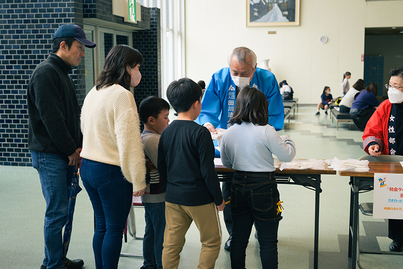 新海誠監督作品の「天気の子」を上映し、上映後は恒例の税金〇×クイズを実施して参加いただいた子供たち全員に景品を進呈しました。