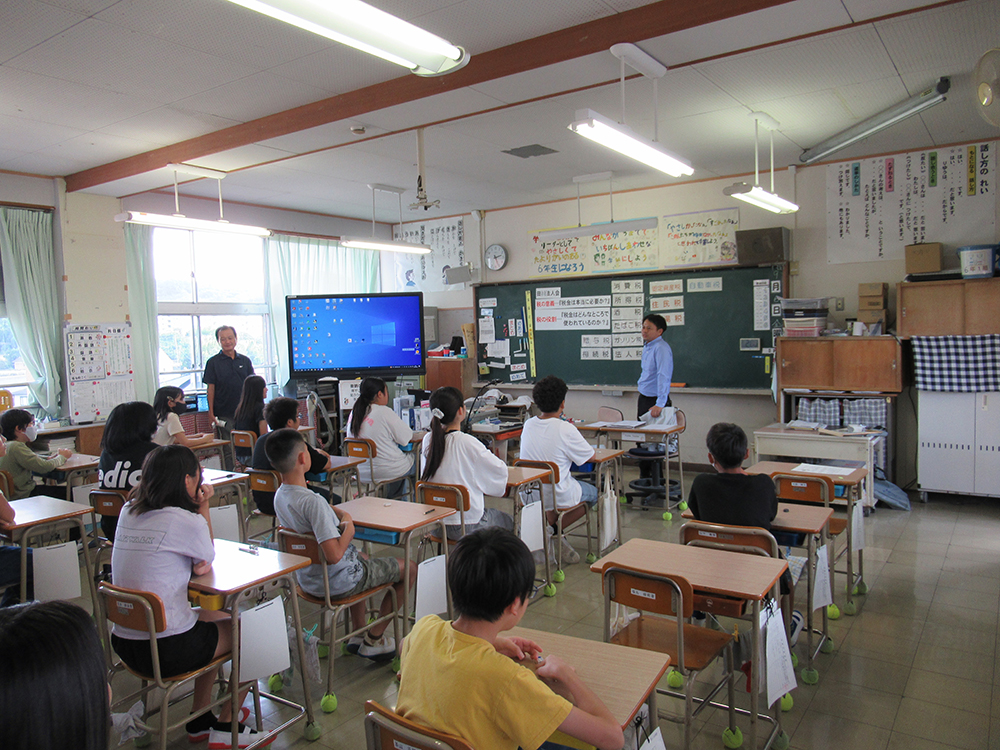 次代を担う子ども達に税の大切さを理解してもらうため、税金の必要性と使われ方について説明しました。