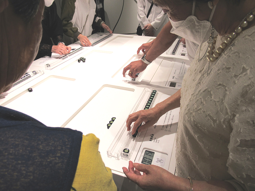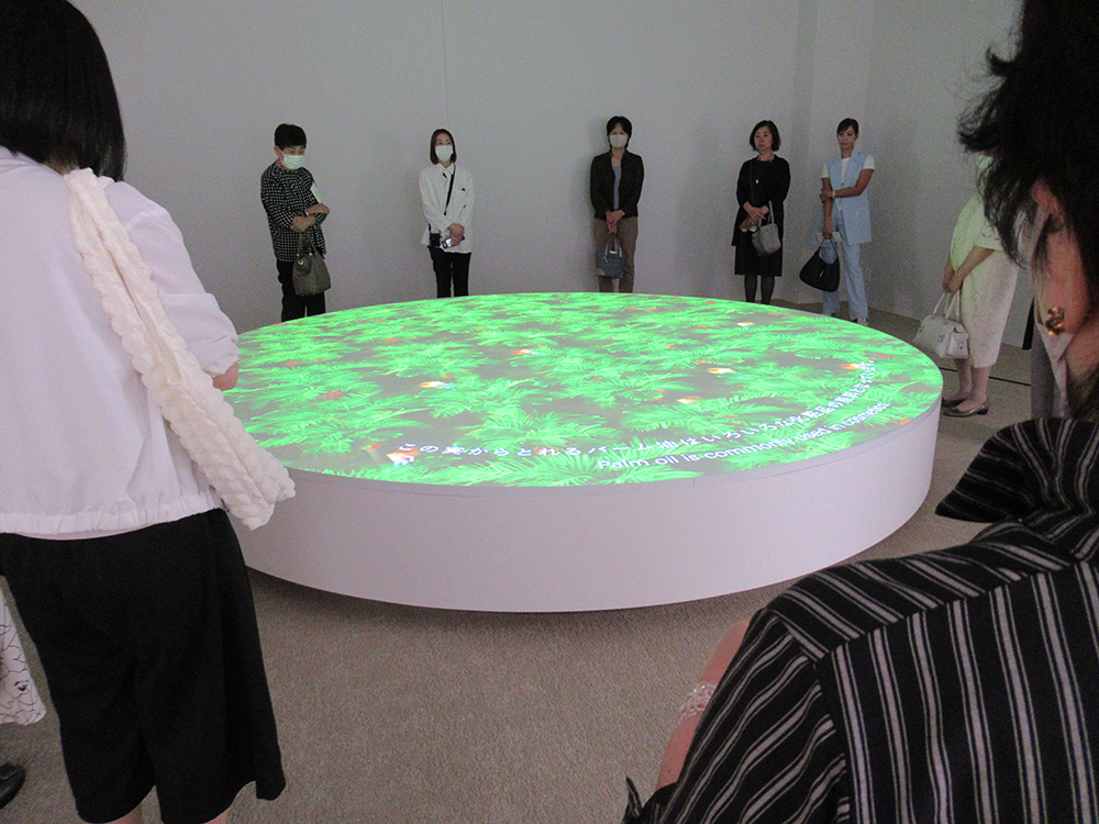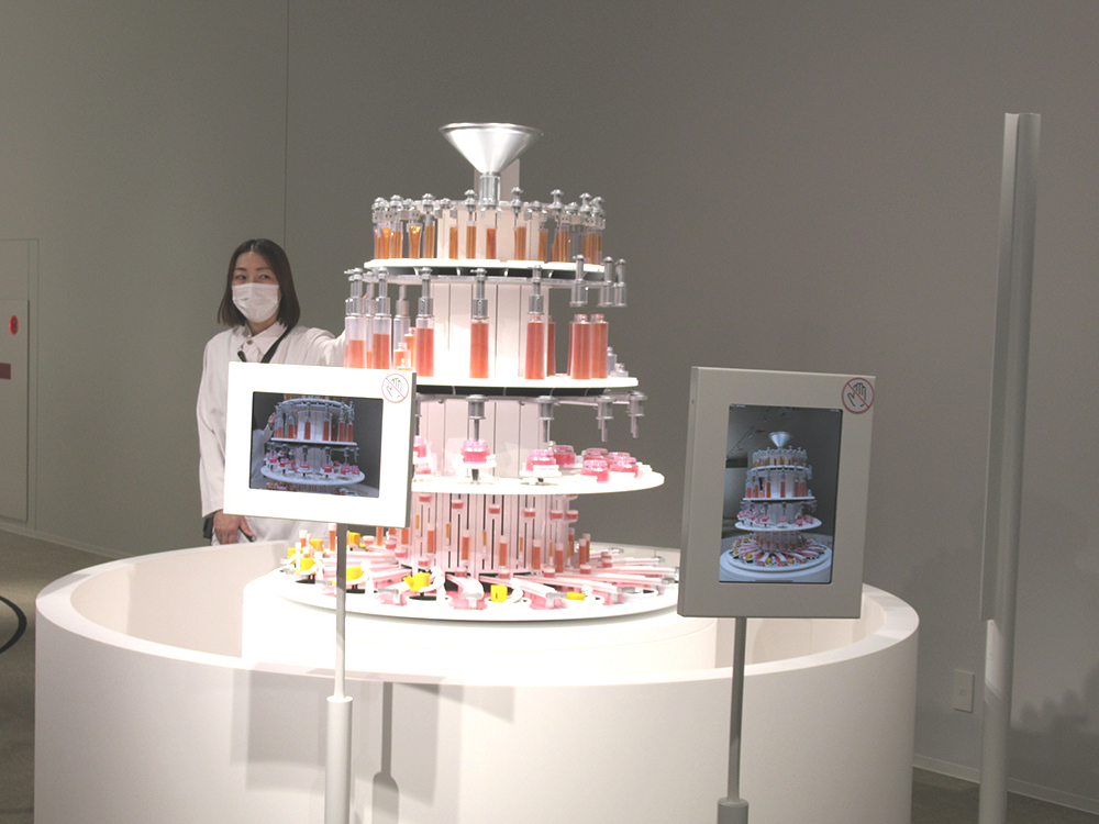 化粧品が出来上がるまでの工程など、製造ラインや充填マシンの模型のほか、視覚、触覚、嗅覚の検査体験などから学ぶことができました。
